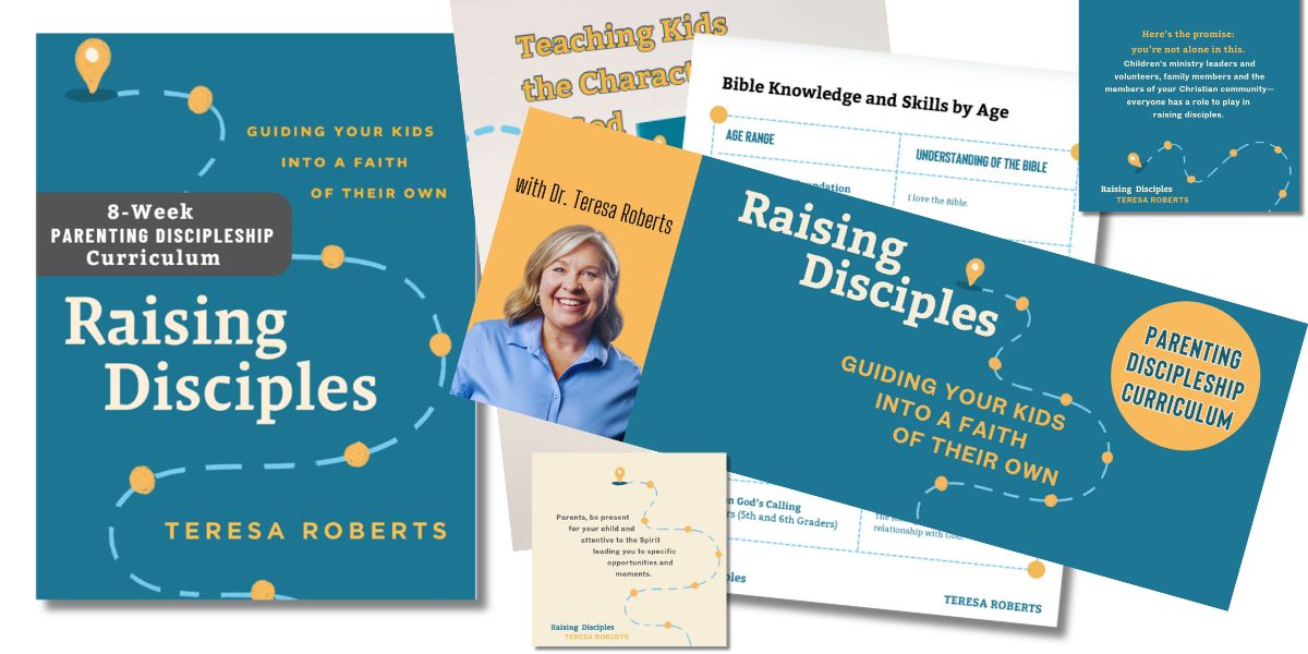This 8-week curriculum is designed for group use as a companion resource to the book, Raising Disciples by Dr. Teresa Roberts. Using the discipleship map introduced in the book, parents can introduce children to a relationship with God and help them discover their identity in Christ. Each week of this curriculum guides the group through a review of a chapter of the book, background to the biblical text, activities, discussion points, and prayer prompts.